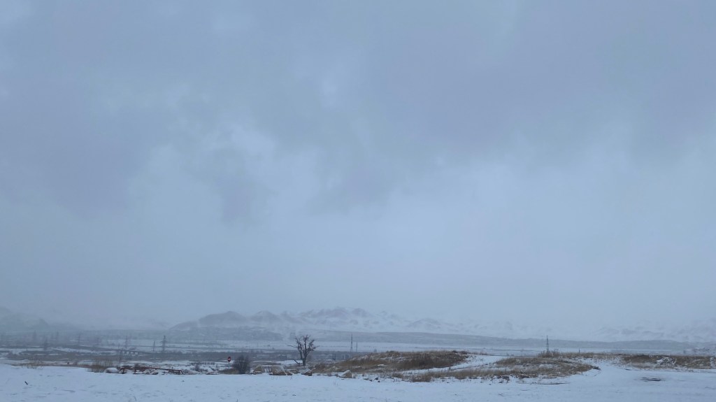 공항에서 밖으로 나오면, 눈으로 덮힌 평야를 보게 된다.