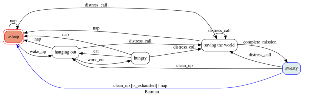 self.machine = Machine(model=self, states=NarcolepticSuperhero.states, initial='asleep')